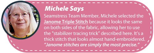 NOTE: If your machine has a built-in thread cutter – a feature we LOVE on many of our Janome studio models, you can use a quilting technique. Move the needle 3” from the last stitch, lower the foot and then engage the cut function. This will leave 3” tails of thread.