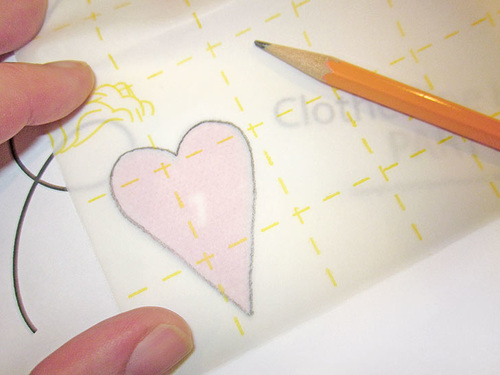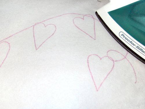 - Place the fusible web over the template and trace an outline of one of the hearts on the paper side of the fusible web. Repeat 7 more times.
