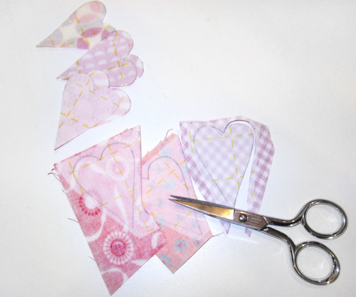 - Trim around each heart, leaving about ⅛” beyond the outline.