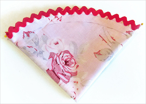 - Using the rick rack seam line as a folding guide, turn back the raw edge of the circle all around and press flat.