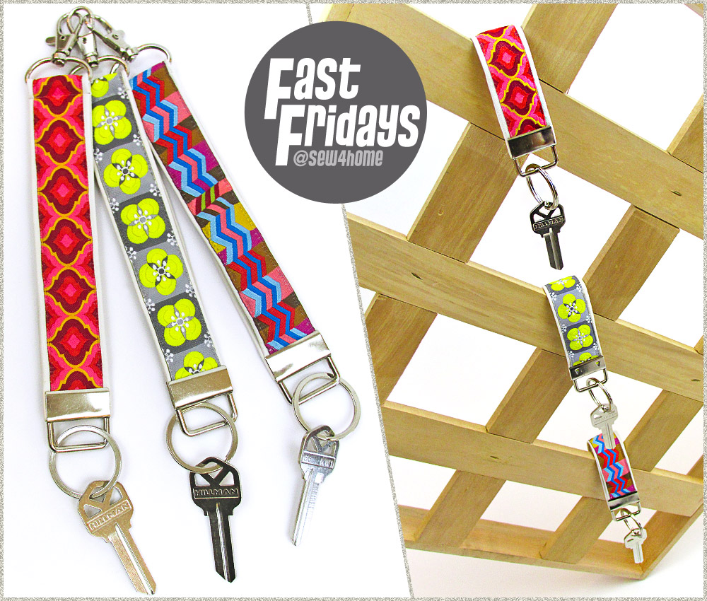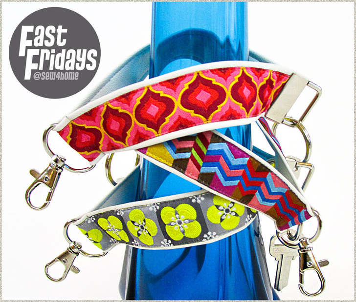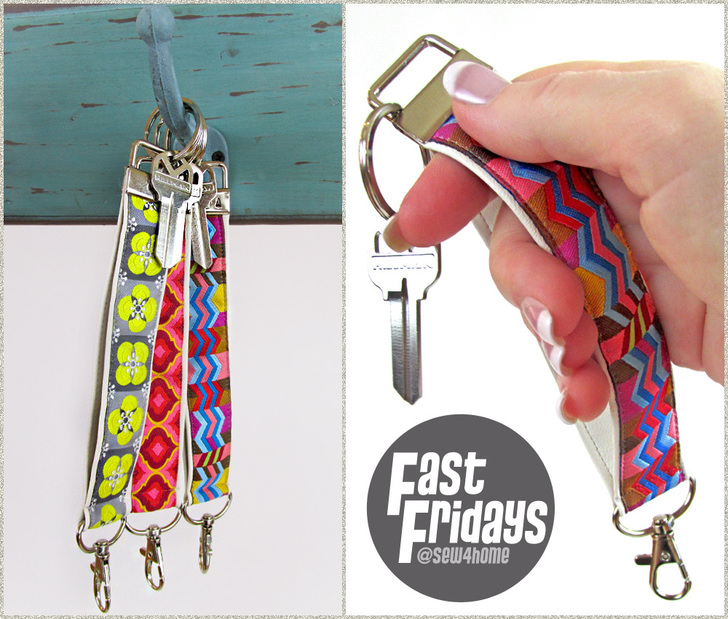 Keep all your keys contained with one of these versatile key fobs. One end has a traditional split key ring; the other end is a swivel hook. You’ll combine just a small piece of thin faux leather with a short length of gorgeous ribbon. Layer, stitch, clamp, and you’re done! Our Fast Fridays projects are all about whipping up something wonderful in no time at all (you don’t have to do them on a Friday!).