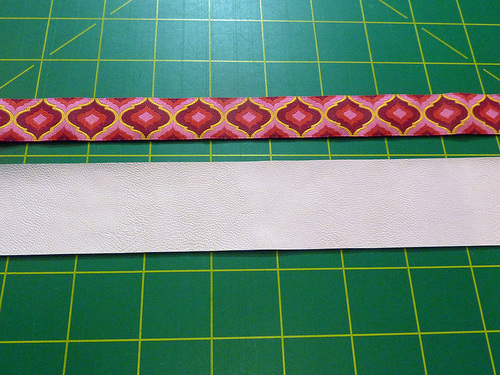 - Place the faux leather strip wrong side up and flat on your work surface.