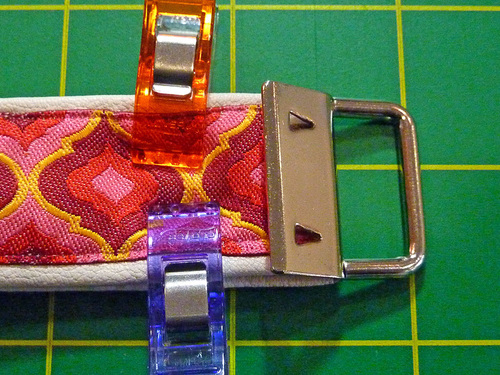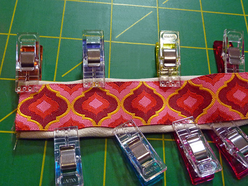 - Re-clip to secure both the ribbon and the folded edges. Don’t be afraid to use plenty of clips. You don’t want the ribbon to shift.