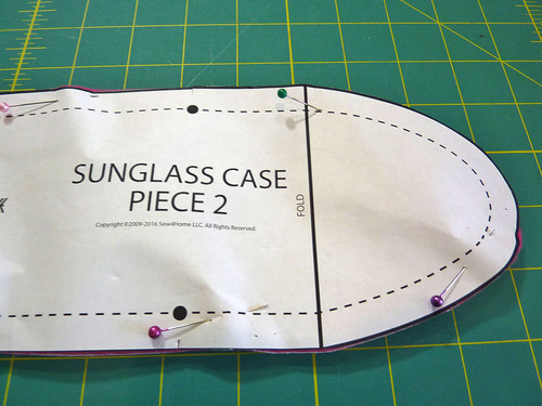 - Following the arrows on the patterns, butt the two pieces together and tape in place. Do NOT overlap. You now have one complete sunglass case pattern.