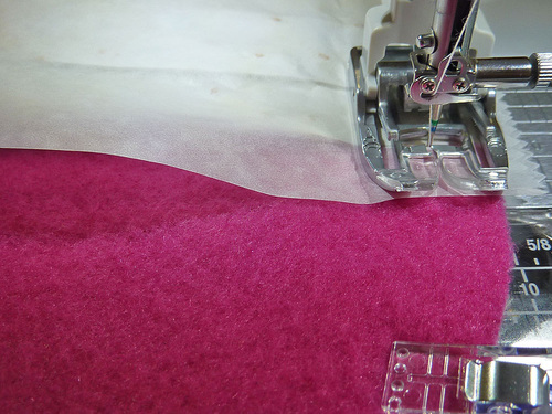 - We also recommend layering a piece of parchment or wax paper between the fabric and the foot.