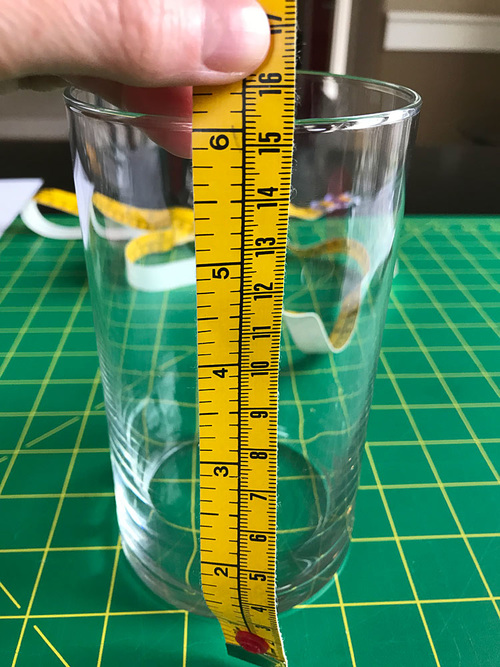 - Remember to allow for a little “air” top and bottom. You don’t want to go all the way up to the top or down to the base. We had about 6” of “useable height” on our short vases. To the height add 1”.