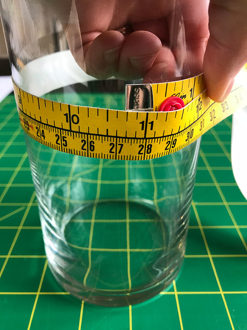 - Measure the circumference of your vase. Our circumference was about 10¾”. To this circumference add 2¼”.