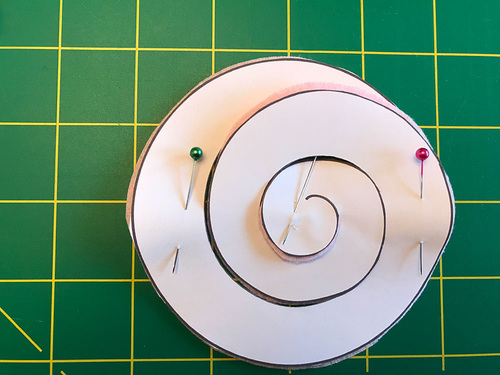 - Cut out the rose spiral “wild” – i.e. a bit beyond the solid outer line.