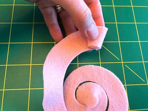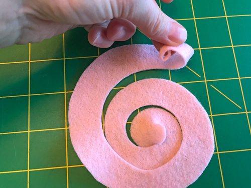 - Roll all the way into the center of the spiral. Keep the very centermost “circle” of the spiral free. It will act like a flap to cover the base.