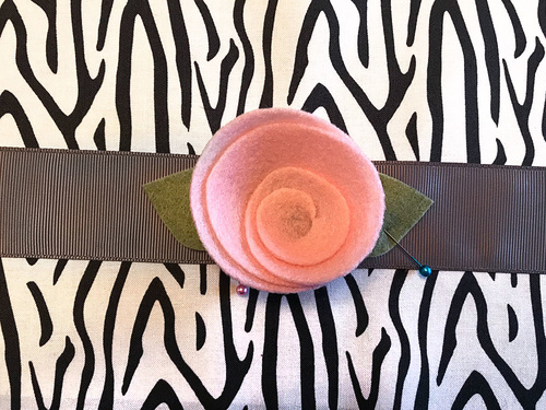- For Rose: ONE small scrap of felt for the rose (we used baby pink), ONE small scrap of felt for the leaf(s) (we used olive green), and one tiny bead (optional) for the center. We used a plain white plastic bead apx. ¼” in size.