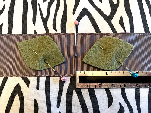 - Remove the rose. We’ve added a seam gauge into the photo below so you can see the approximate distance of our leaves from the center pin point.