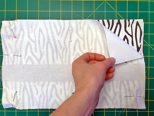 - Place the loop side (the soft side) along the right hand side of the panel on the right side of the lining. This means the two strips of the Velcro® are on opposite sides of the panel. Pin in place.