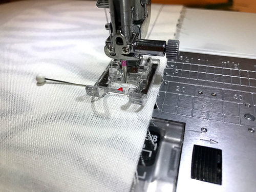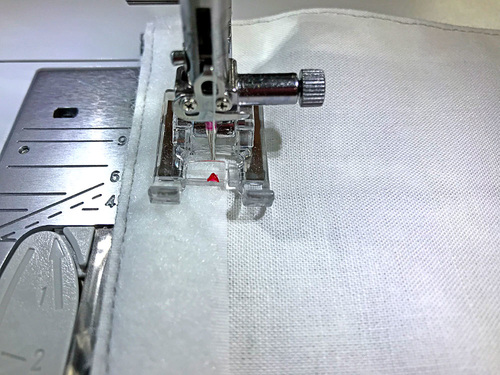 - Edgestitch around the entire perimeter of the panel. This stabilizes the edge and closes the opening used for turning. We again opted to use our Janome Edge Guide foot.