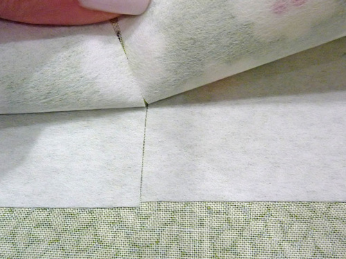 - Place the two interfaced layers wrong sides together, aligning the “crack” where the two pieces of interfacing come together on each fabric panel.