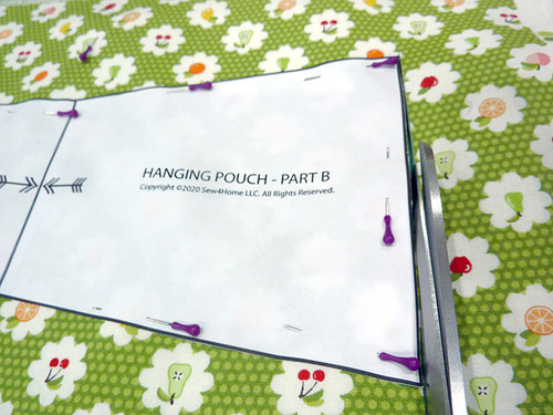 - Download and print out the pattern piece: Hanging Pouch (parts A and B). These pattern pieces have been bundled into one PDF to make the download easier.