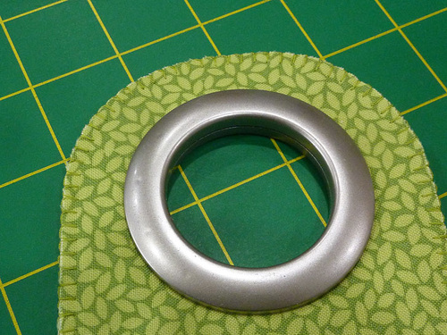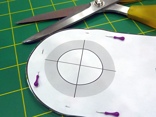 - Find the paper pattern. Place it over the curved top and mark the center point of the grommet opening.