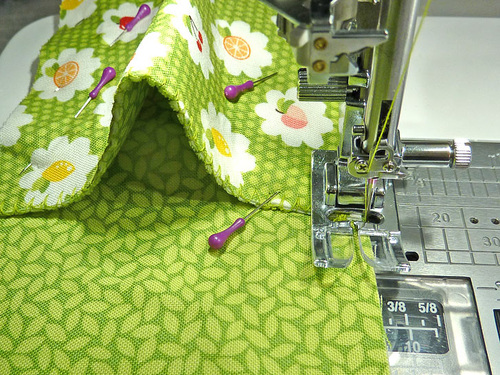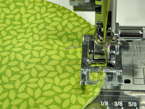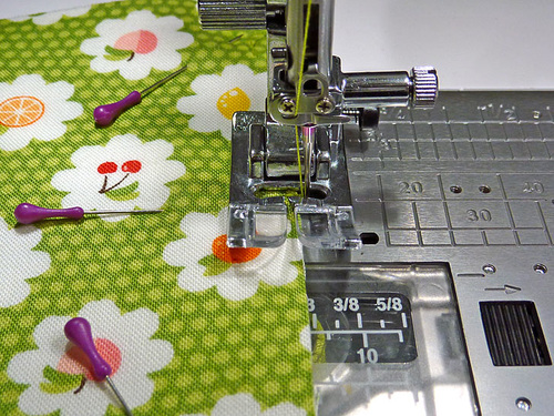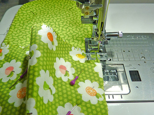 - Stitch along just the bottom straight edge first. This is what will become the top of the pocket when folded up into position.