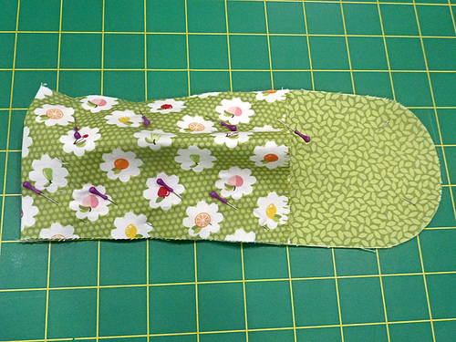 - Remove the paper pattern and re-pin through all the layers. Pinning around the bottom straight edge…