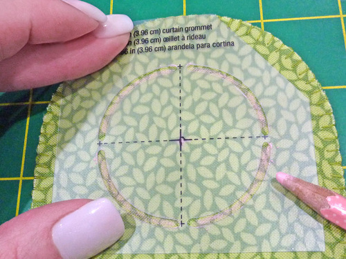 - Remove the paper and use the template that comes with the grommet to draw in the full circle.