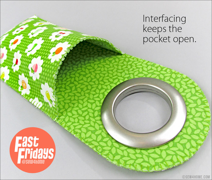 If you’re like us, you love pockets. Pants, skirts, coats… if they don’t have pockets, forget it! So what better shape to turn into a handy holder? We created a unique pattern that allows the top of the pocket to curve outward, which fits so many more options than a traditional flat pocket. A large plastic grommet at the top lets you hang it from a knob or a hook.