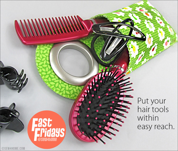 Our design calls for a 1-9/16” Dritz Plastic Curtain Grommet for the hanging opening. This size is large enough for most drawer knobs or use a Command Hook to add a hanger wherever you need a little mini storage.