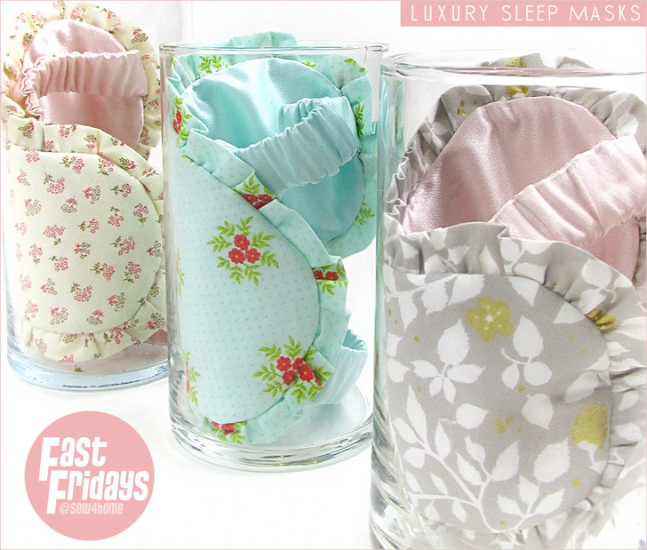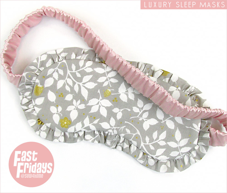 Sleep masks are more than beauty essentials. These small yet effective relaxation tools can help you get the light-free, restful sleep you deserve. This project is a three-in-one winner: quick and easy as part of our Fast Fridays series, an excellent ScrapBusters option, and a great gift idea! Our masks combine pretty quilting cotton on the outside, with a sweet ruffle, and soothing Mulberry Silk Charmeuse on the inside.