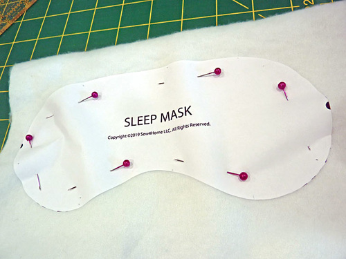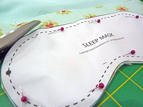 NOTE: The length of the stretchy band that holds the sleep mask in place is standard for an average size adult head. It is not meant to be super tight as that would be uncomfortable for sleeping. That said, we recommend measuring your head (or the head of the person for whom you are making the sleep mask). If the measurement, temple to temple, is noticeably longer or shorter than 17”, you may want to adjust the elastic and the casing length accordingly. The elastic should be 1” shorter than the head measurement (temple to temple) and the casing cut length should be 7” longer than the elastic for a nice gather. As long as you are using ¾” elastic, the width of the casing can remain as-is. - Using the pattern dots as your guide, make small snips into the layers. These are the two points where the stretchy band will attach.