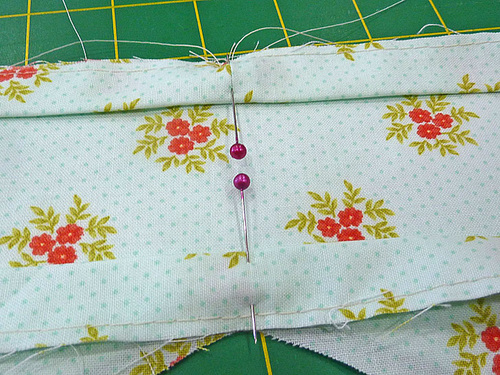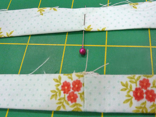 - Place the ends of the finished strip right sides together and pin in place.