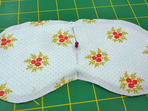- Mark corresponding center points on the fused front mask panel: one at the bottom of the curve that goes over the nose and the other directly opposite at the top of the mask.