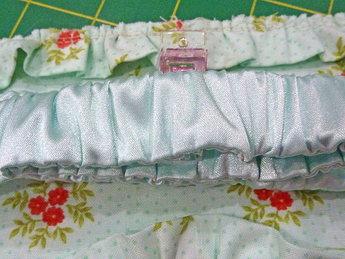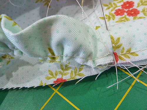- Run a gathering stitch the length of the ruffle strip, staying close to the raw edges.