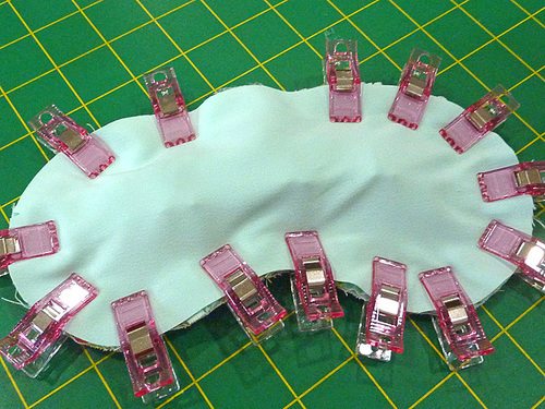 - Clip or pin together the center of the stretchy band to keep it out of the way of the final layering.