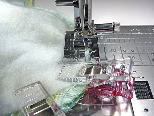 - Edgestitch across the end, through all the layers, to secure this end of the elastic.