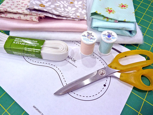 - Scraps or ¼ yard of 44″+ wide quilting weight cotton for the mask front and the ruffle