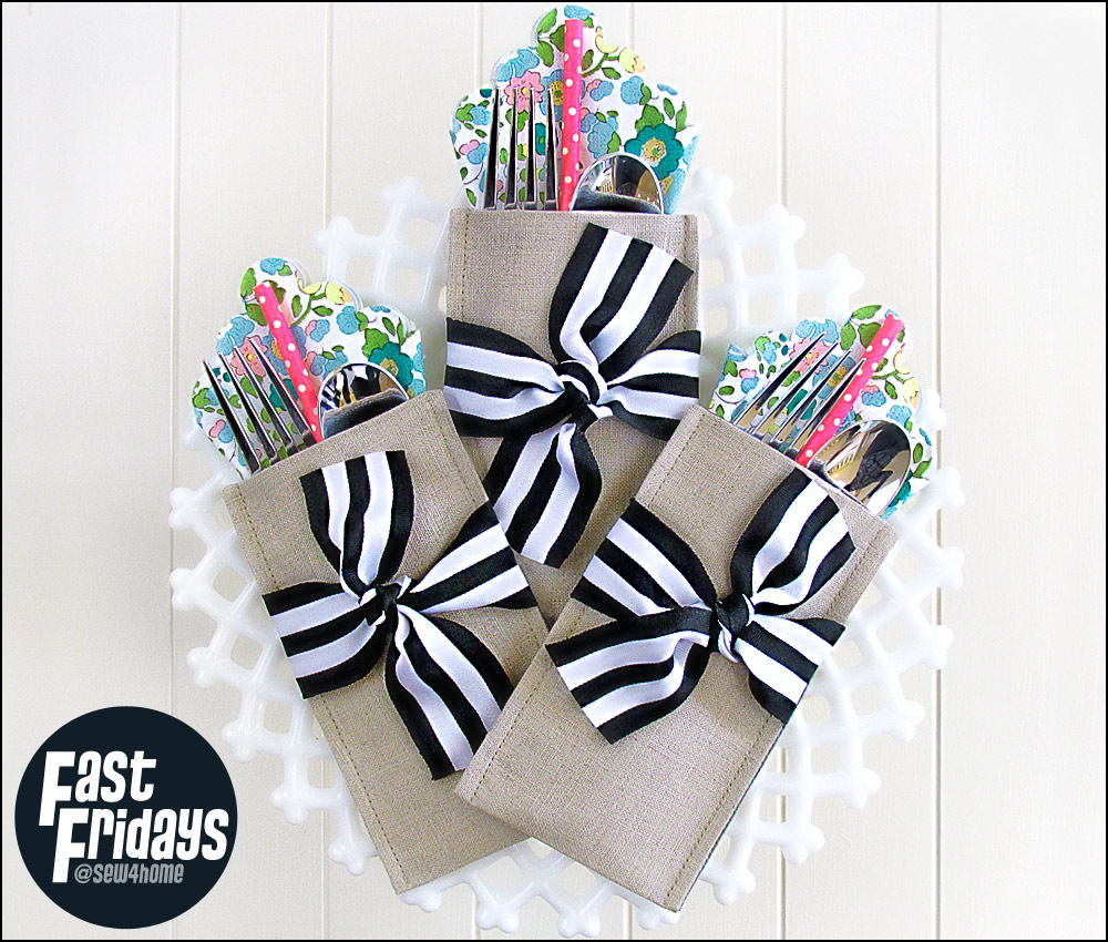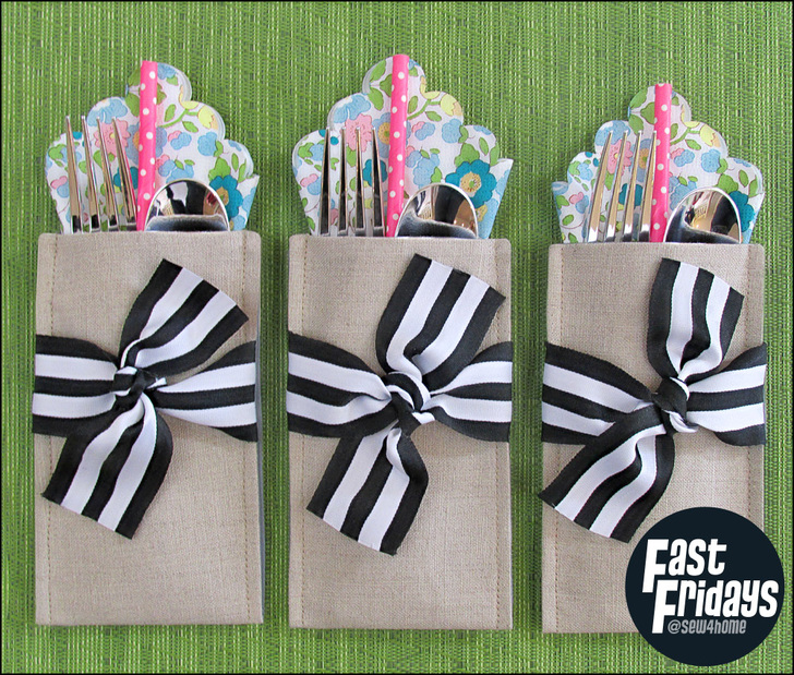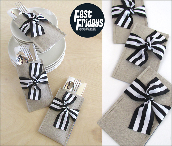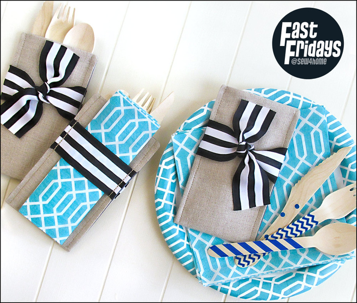 If your party is happening outside, these are an especially great idea. They keep the napkins from blowing away and the flatware clean. They also make it easier to shuttle utensils to and from the kitchen. Load them up, stack them up, carry them out.