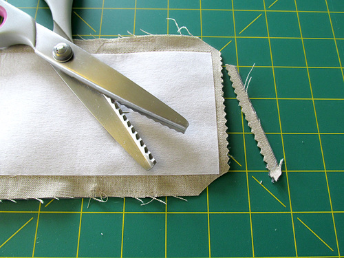- Clip the corners. And, if using a fabric prone to raveling, such as linen, finish the seam allowance. We used a pinked finish. Check out our four-part series for more information about common machine sewn seam finishes.