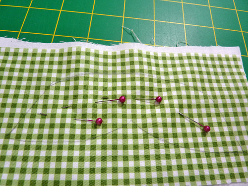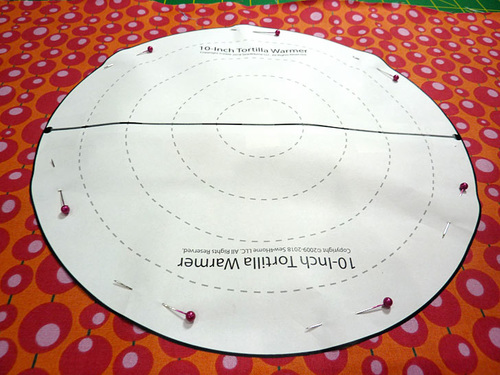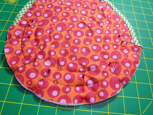 - Pin together the layers along the unbound edges. Remember, you are now working with BOTH circles layered together.