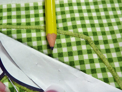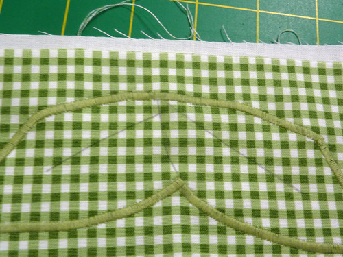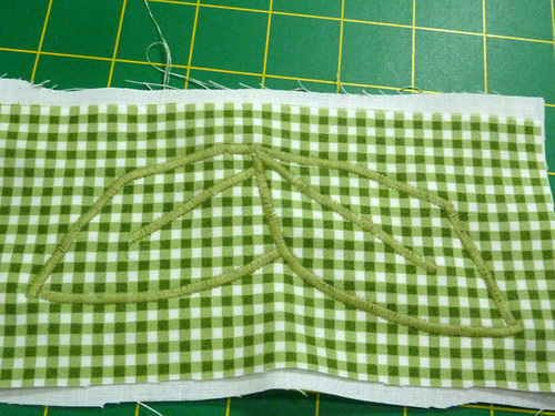 - Maintaining the same machine settings for appliqué, stitch along these three drawn lines.
