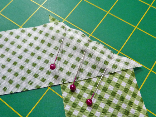 - Tuck under the raw edge at this snip, making a diagonal fold. Pin in place.