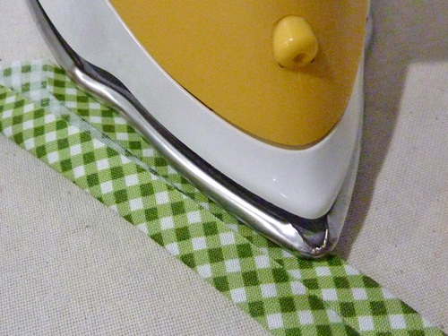 - With each length of binding, fold the strip in half wrong sides together and press to set a center crease.