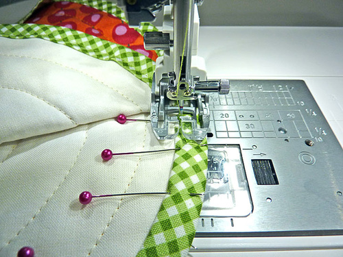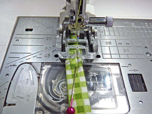 - The machine should still be threaded with thread to best match the binding fabric in the top and bobbin and the stitch should still be slightly lengthened.