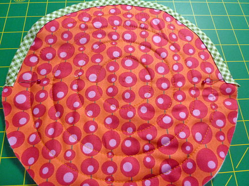 - When the stitching is complete, steam lightly to flatten the warmer. The concentric circles can slightly distort the shape.