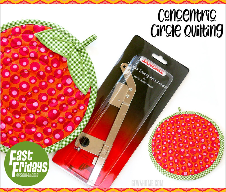 NOTE: As mentioned above, the Circular Sewing Attachment is a great optional accessory for the Janome machines. If you own a Janome too, we recommend visiting your local authorized Janome dealer to inquire about one for your machine. Be sure to know your model as there is more than one variation for this accessory. If you do not own a Janome, you can draw in concentric circles, using the drawn lines on our downloadable templates as your guide - As always with any kind of specialty stitching, we recommend testing first on scraps to master the technique.