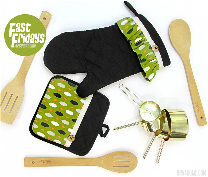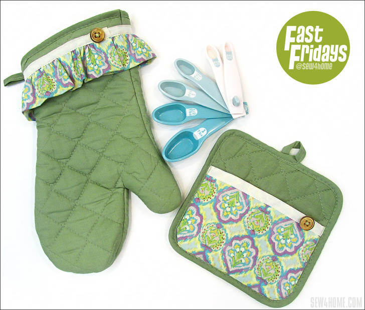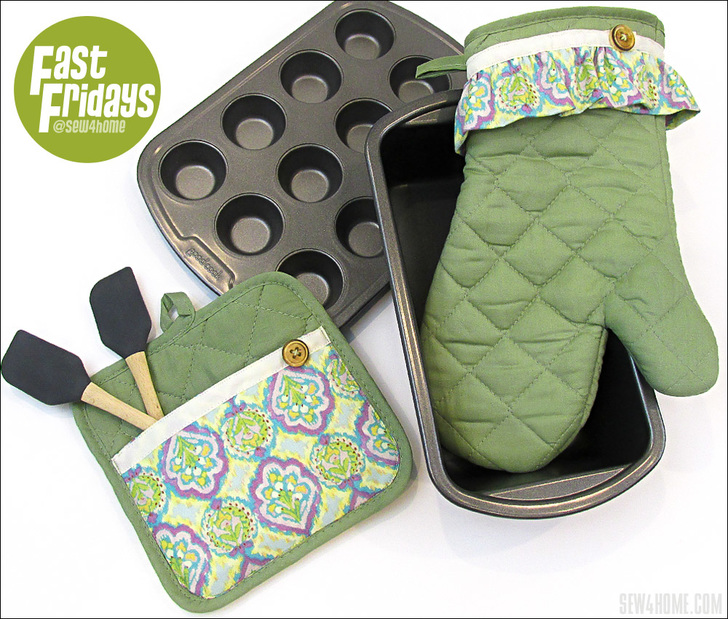 S4H Fast Fridays projects are all about whipping up something wonderful in no time at all. The supplies shown below are for just one hot pad and mitt set sleeve, but it would be easy to collect everything you need from materials on hand, set up an assembly line, and whip up several sets in a single afternoon.
