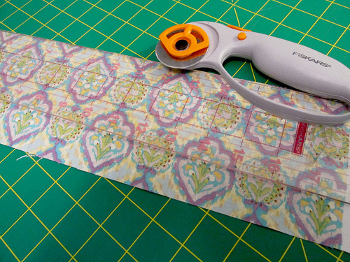 - For the double layer ruffle option, we cut a strip 4½” x 22”.