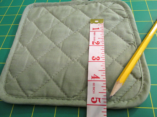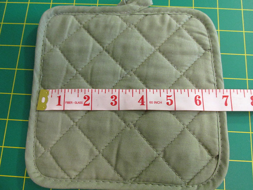 Your cuts will be sized to fit the hot pad and mitt you find, so we haven’t listed a finished size here. In general, most hot pads are around 7” square and most mitts are about 12” x 6”. Read through the steps in our Getting Started section below to see how easy it each to measure, size, and cut for your best fit.