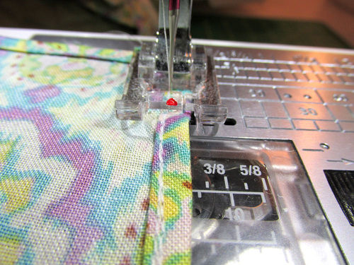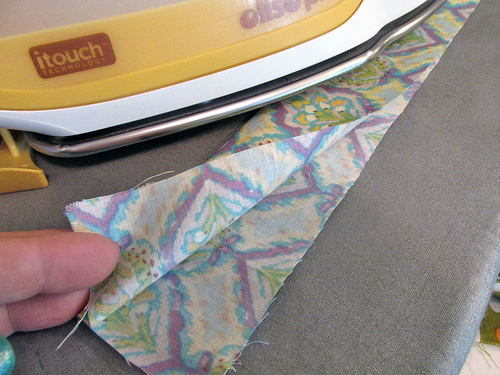 - Press flap, pressing in the raw edges at the opening so they are flush with the sewn seam.