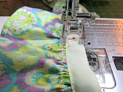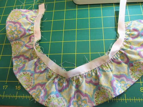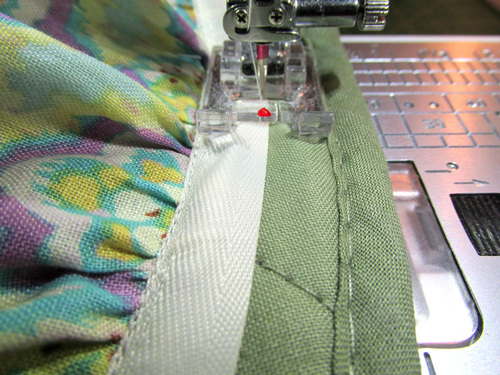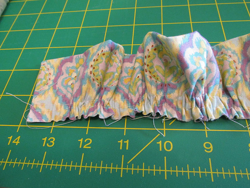 - Place the twill tape along the top of the ruffle and edgestitch in place.