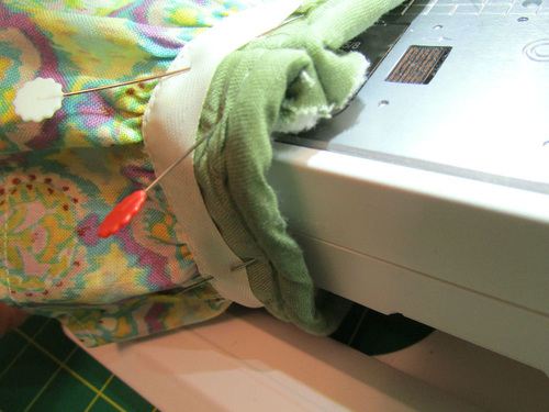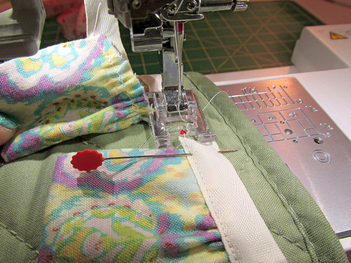 - If your machine has a free arm, now is the time to use it. Slip the mitt over the arm.