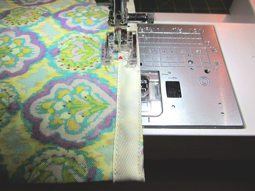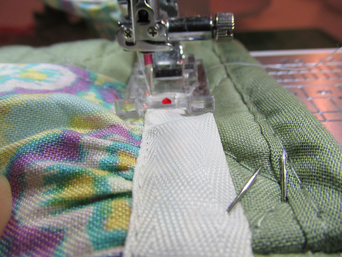 - Reposition, and edgestitch around again, this time along the top edge of the twill tape through all the layers.