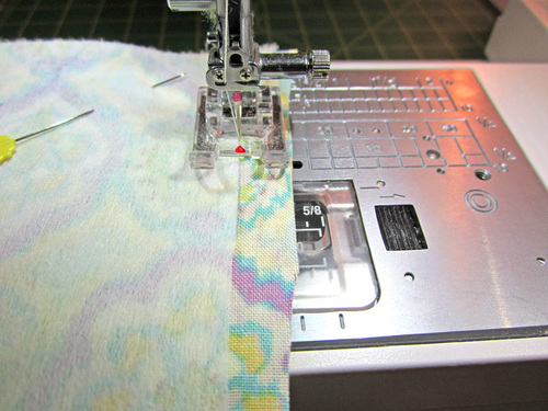 - Using a ½” seam allowance, stitch all around. Remember to lock the seam at the 3” opening for turning along the top straight side. Also remember to pivot at the upper corners and to go slowly and evenly around the bottom curves.